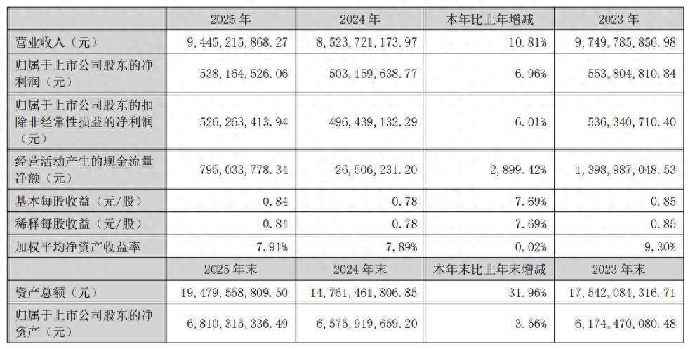 3月27日晚间,赢合科技(300457)公布2025年年报,公司营业收入为94.45亿元,同比上升10.81%;归母净利润为5.38亿元,同比上升6.96%;扣非归母净利润为5.26亿元,同比上升6.01%;经营现金流净额为7.95亿元,同比增长2899.42%。公司拟向全体股东每10股派发现金股利0.85元(含税)。
